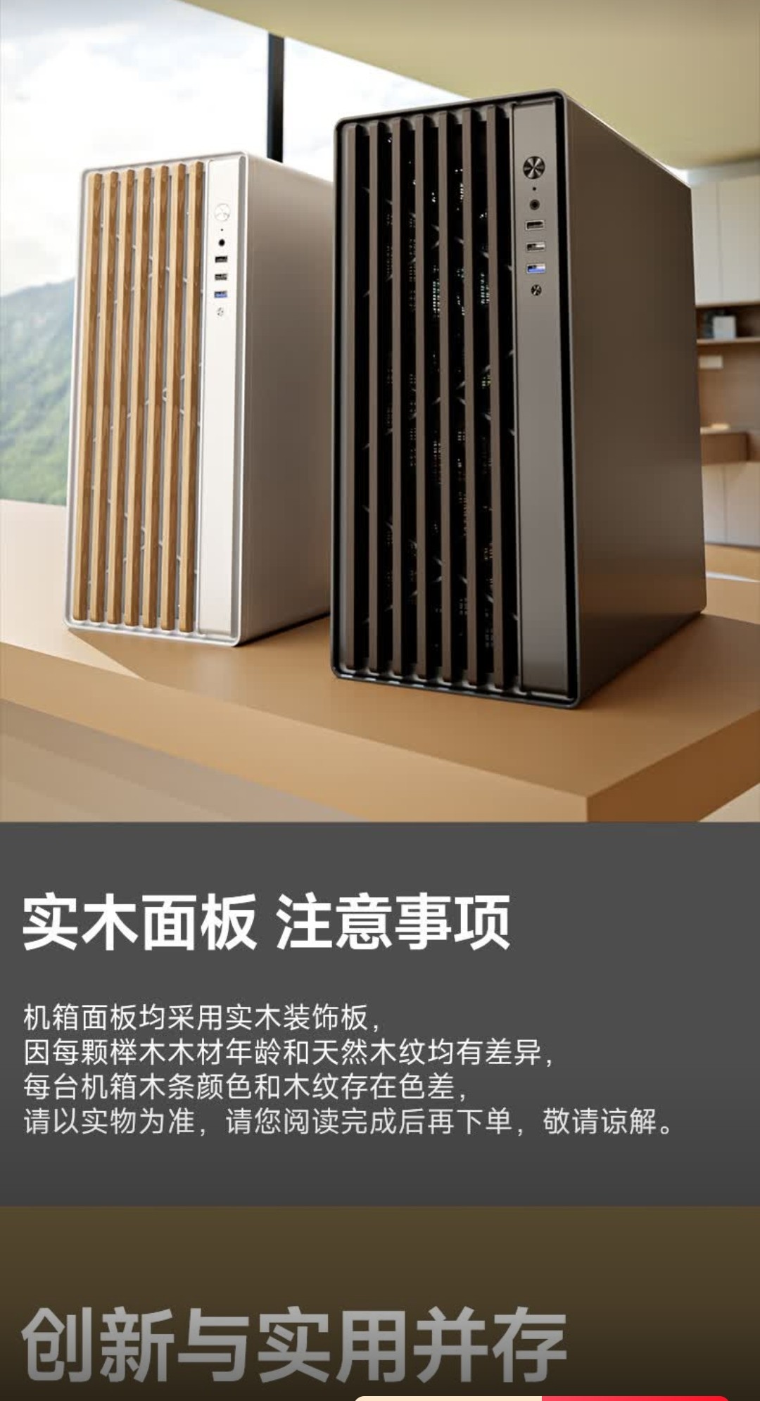 爱国者御风N20黑色 台式机电脑主机箱 ATX主板/木艺风道机箱