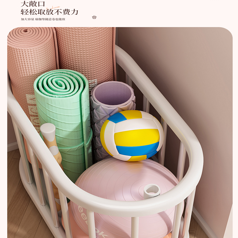 瑜伽垫收纳筐家用健身器材羽毛球篮球球类收纳神器体育工具置物架