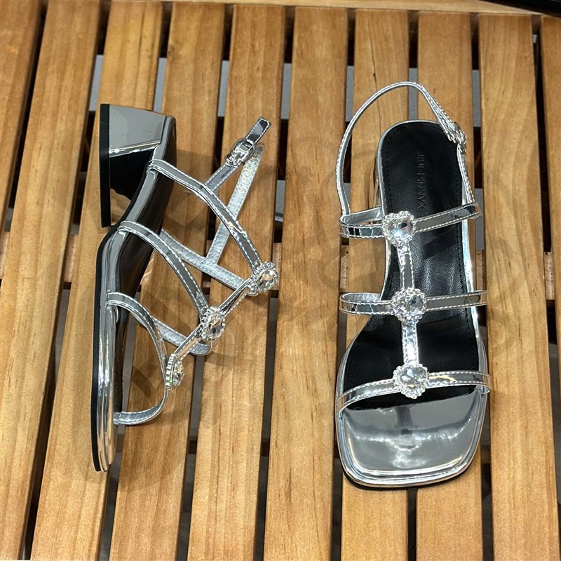 一字带凉鞋女2024新款仙女x风配裙子水钻露趾粗跟高跟鞋久站不累