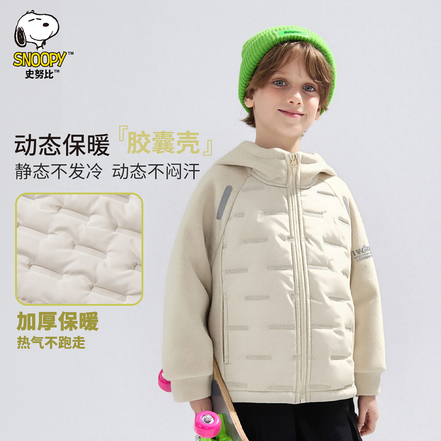 史努比男童夹棉外套秋冬2025新款儿童冬季棉服大童女童冬装棉衣