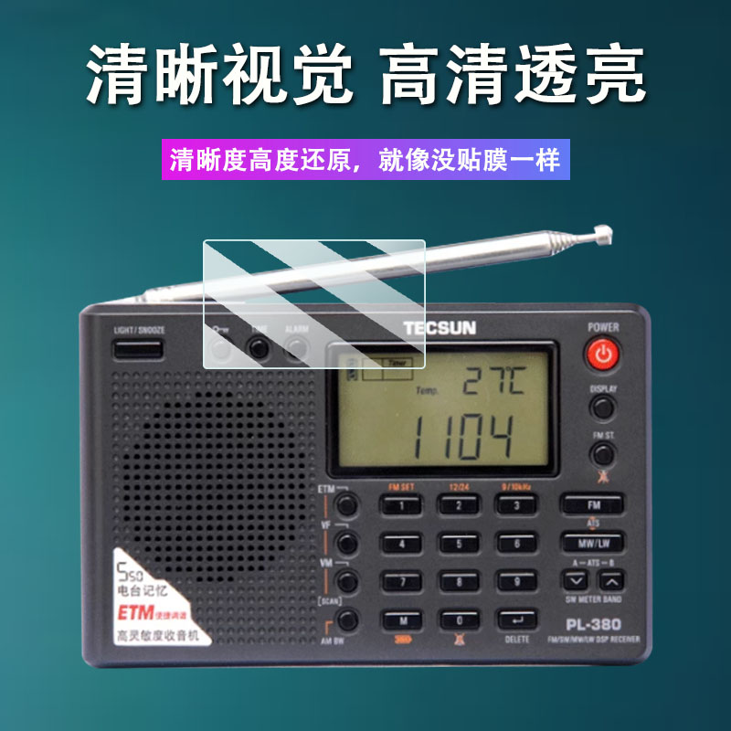 适用德生PL330收音机贴膜PL380/PL606/PL680屏幕膜R202T/R909/R218/GR88P保护GR98/99/88H501/RP307/A5非钢化