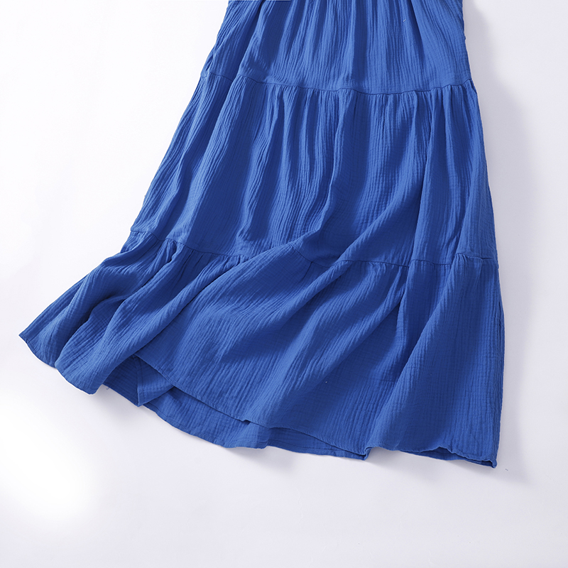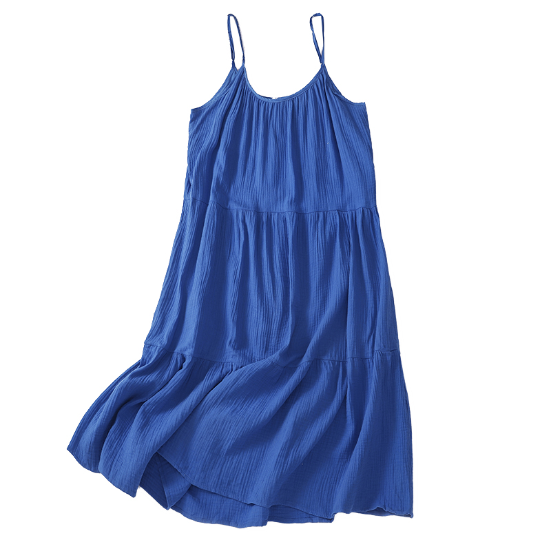清仓捡漏~棉麻吊带连衣裙女夏季超仙气质克莱因蓝海边度假长裙子