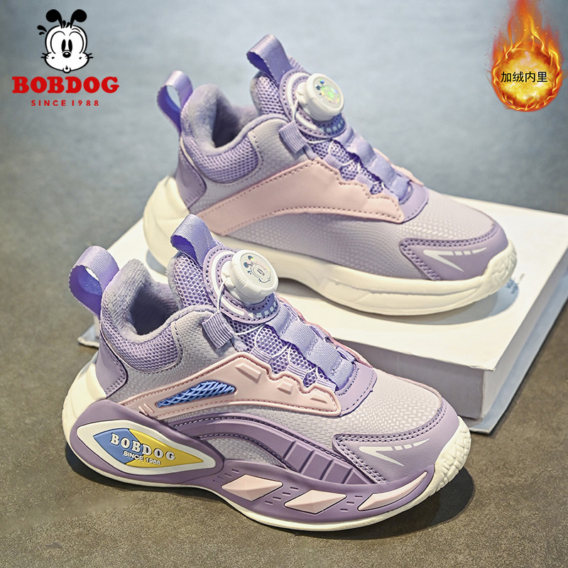 巴布豆男童鞋子冬季2024新款中大童加绒保暖二棉鞋男孩儿童运动鞋
