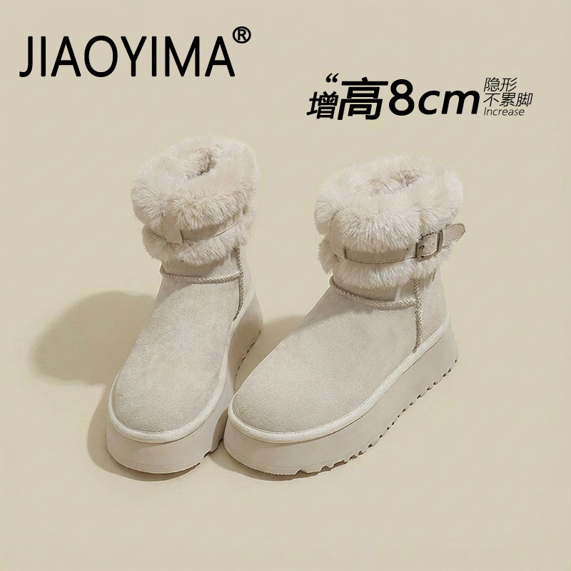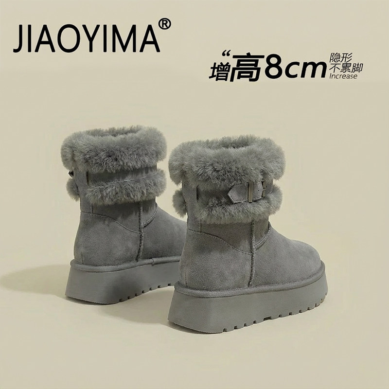 灰色内增高雪地靴女2025冬季新款小个子厚底加绒加厚保暖东北棉鞋