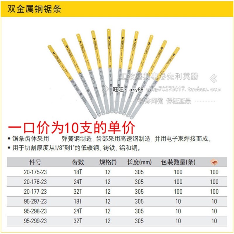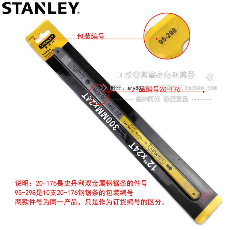 史丹利sd双金属钢锯条12寸 1q8齿95-297-23/24齿95-298/32齿95-29