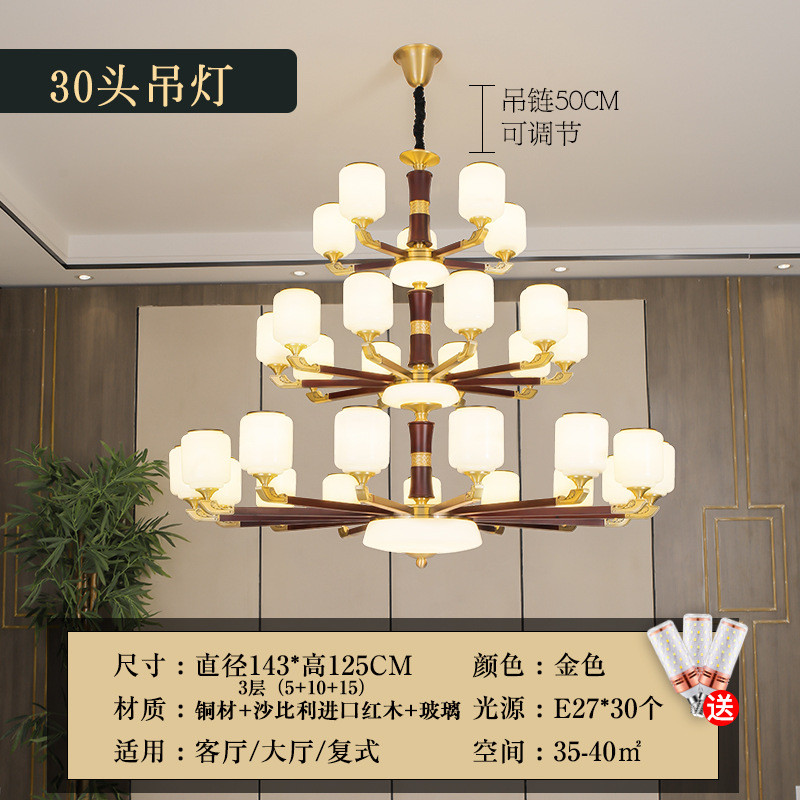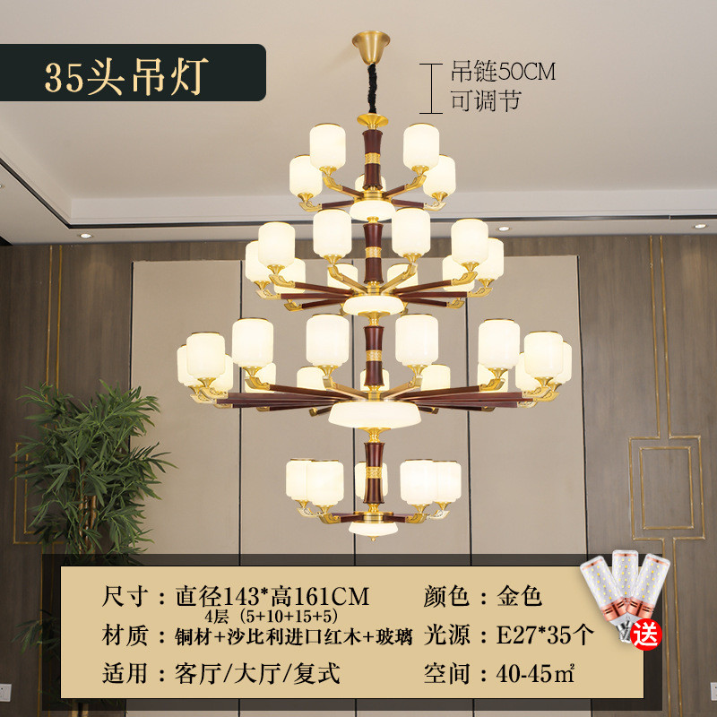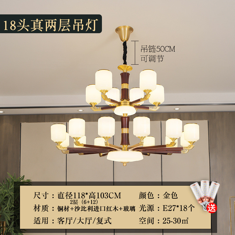 新中式全铜吊灯客厅灯卧室典红木仿古餐厅灯中国风别墅复式楼灯具