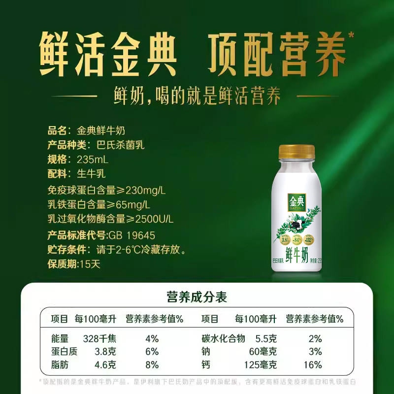 伊利金典鲜牛奶235ml*7+A2有机鲜牛奶235ml*2