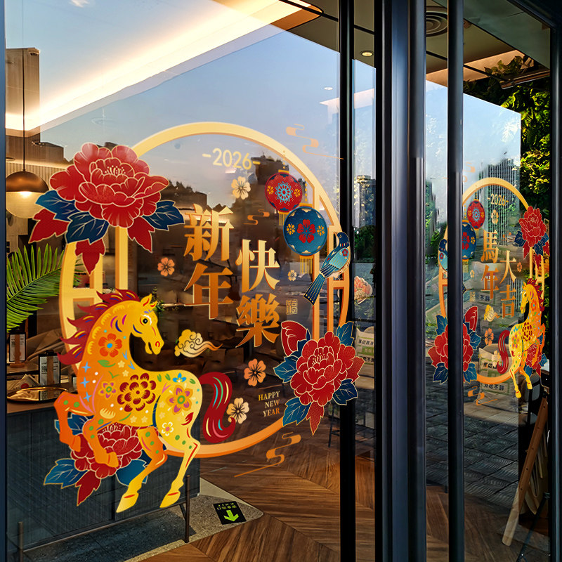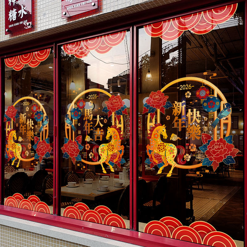 新年装饰窗花2026马年春节窗贴过年店铺橱窗中式静电玻璃贴门贴纸