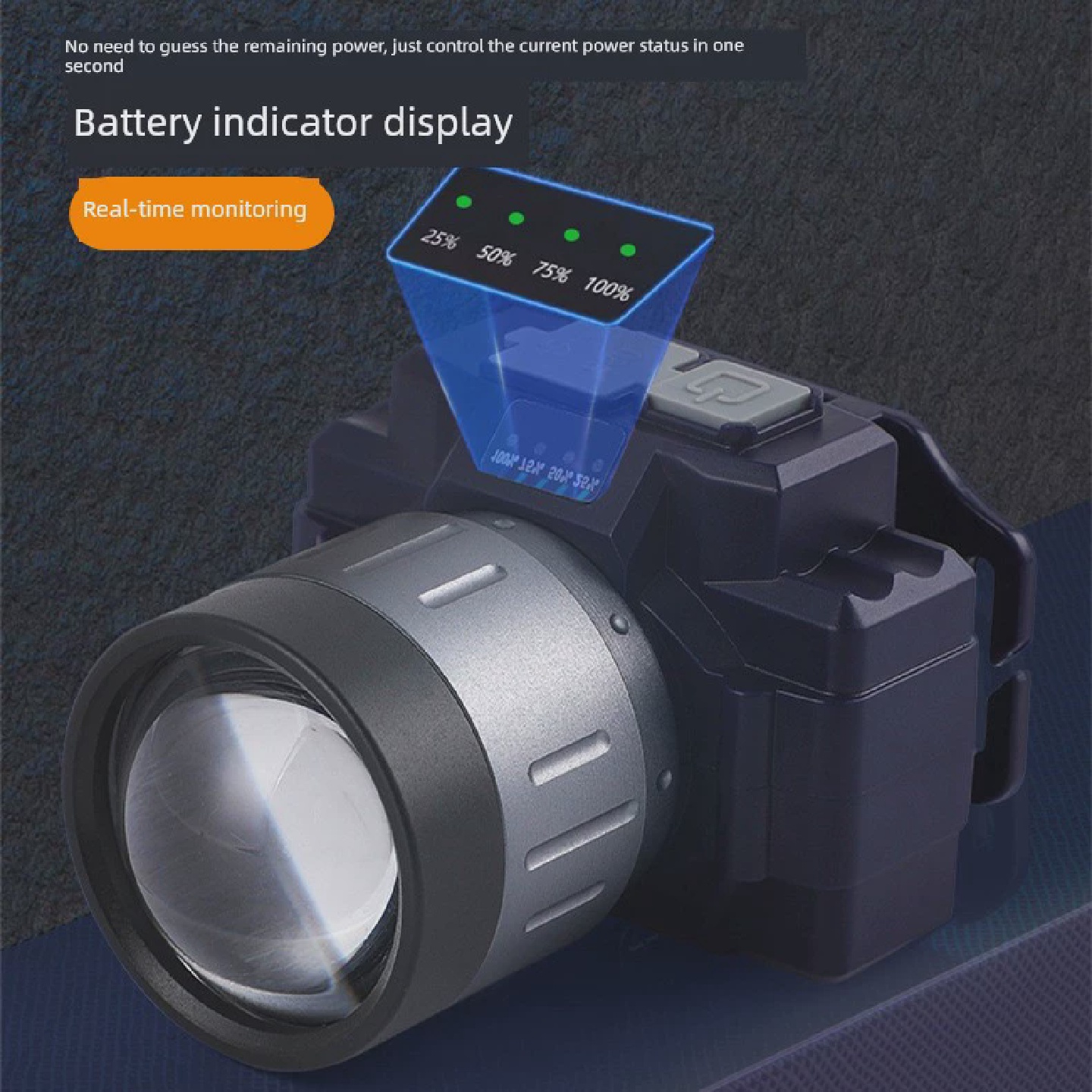 变焦头灯矿灯可调焦距超亮夜钓鱼灯强光充电手电筒户外超长续航