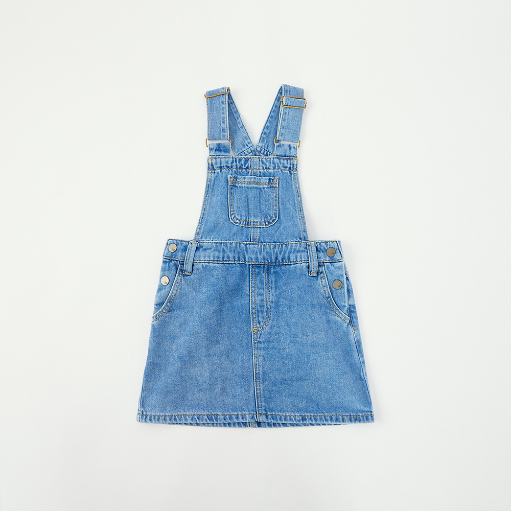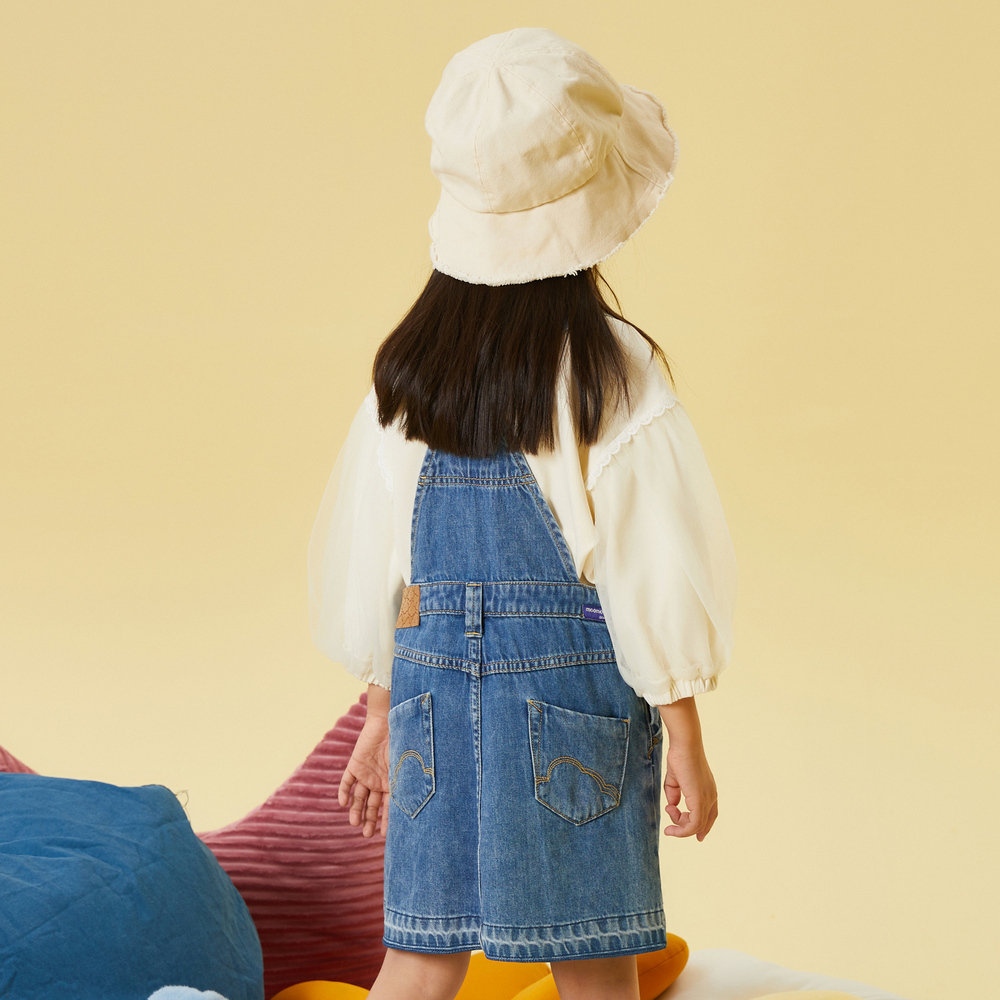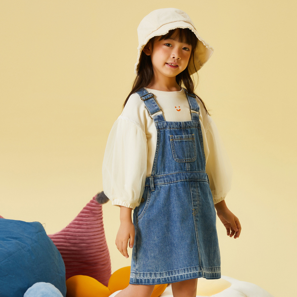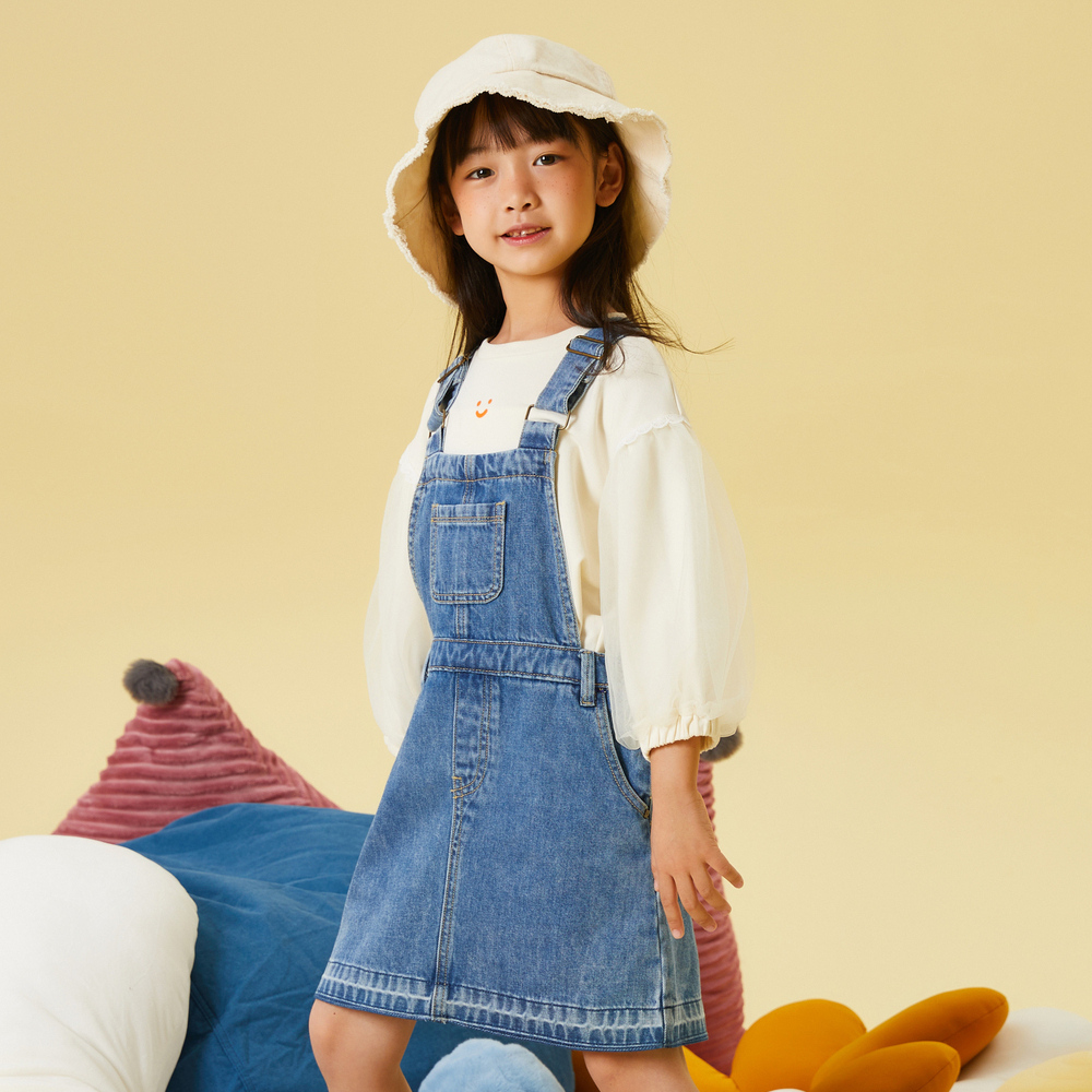 moomoo童装女童牛仔背带裙春秋新款儿童时尚柔软舒适全棉牛仔裙