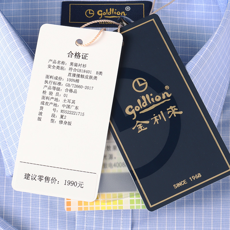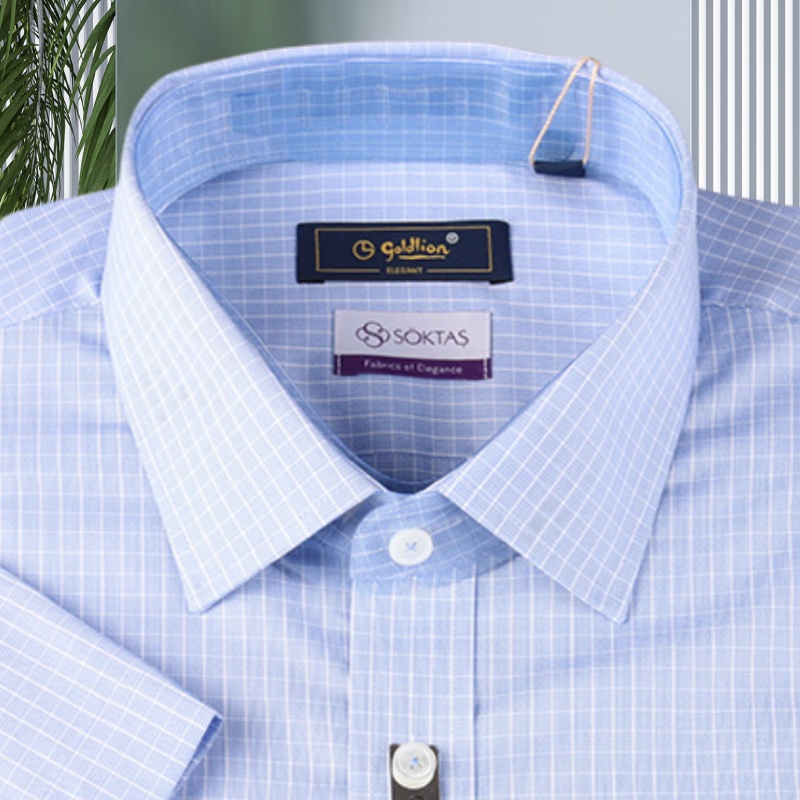 金利来男装短袖衬衫夏季格子修身纯棉商务正装MSS22221715-55
