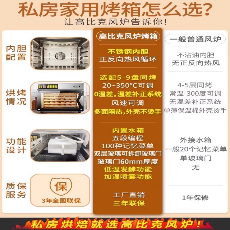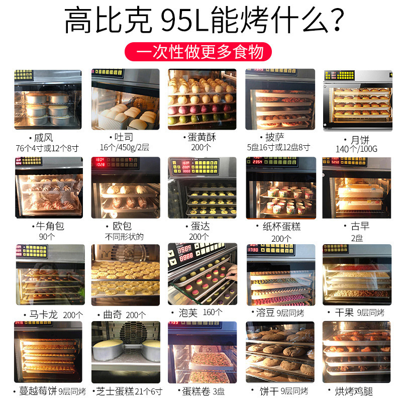 高比克T95S蒸汽烤箱风炉平炉二合一商用发酵内置水箱九层同烤110L