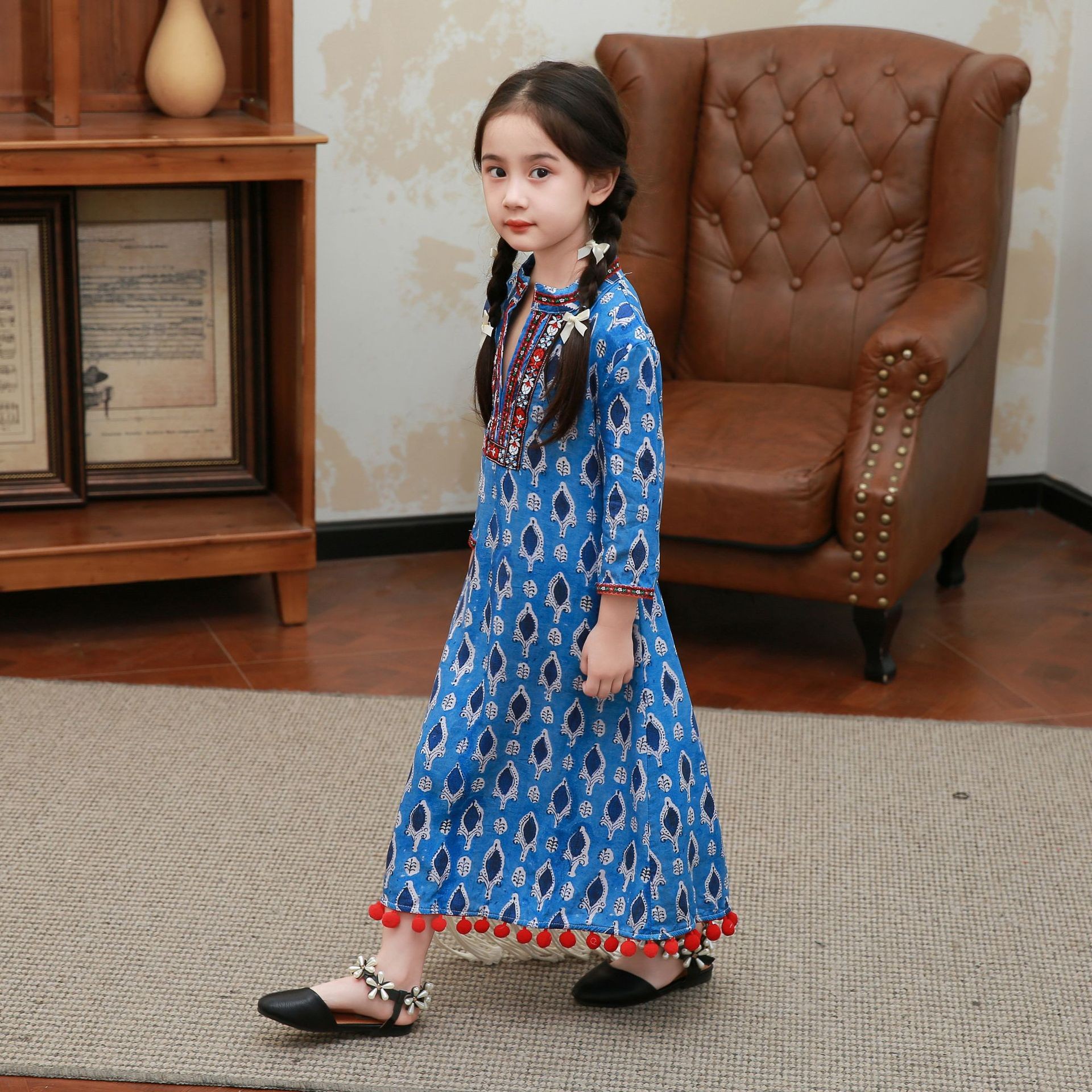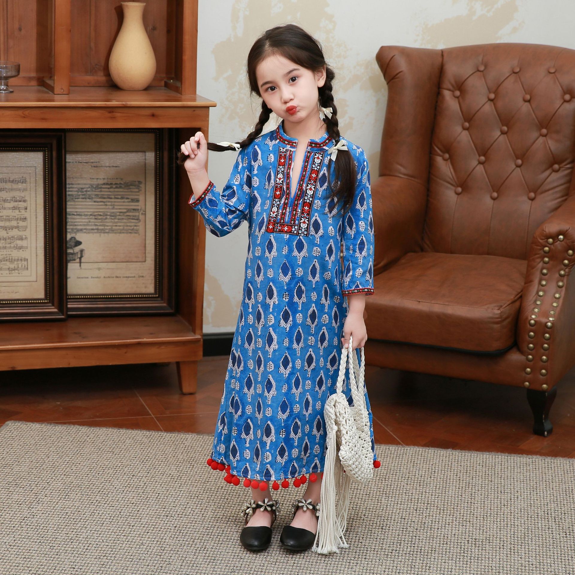 2025亲子夏季新款母女连衣裙沙滩民族风绵绸七分袖长裙毛球边