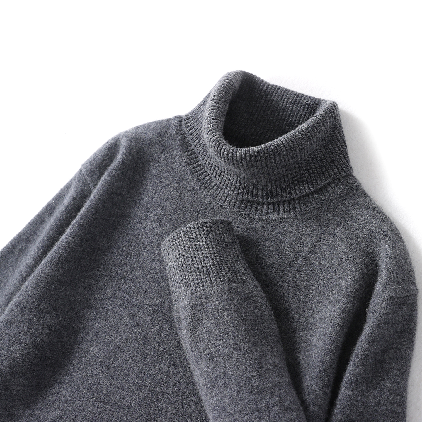 100%纯羊毛衫高领男士套头毛衣秋冬新款宽松大码高翻领针织打底衫