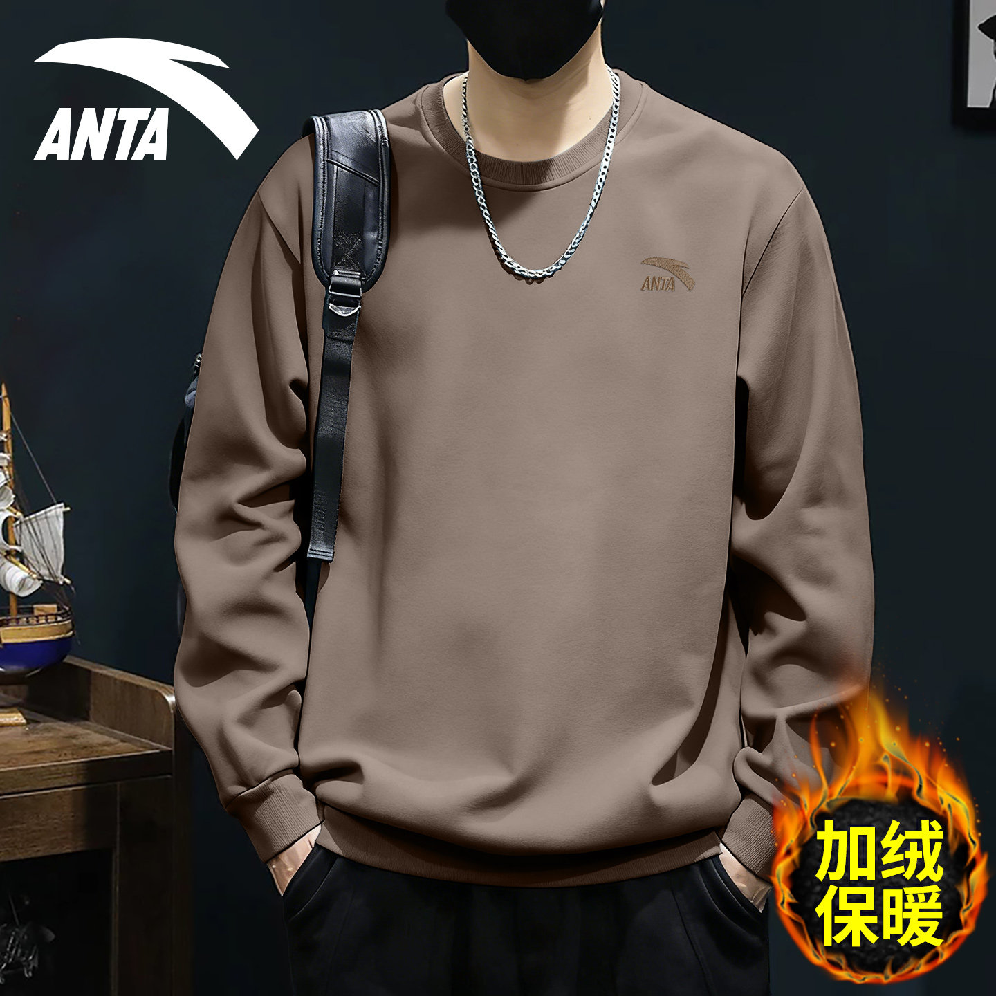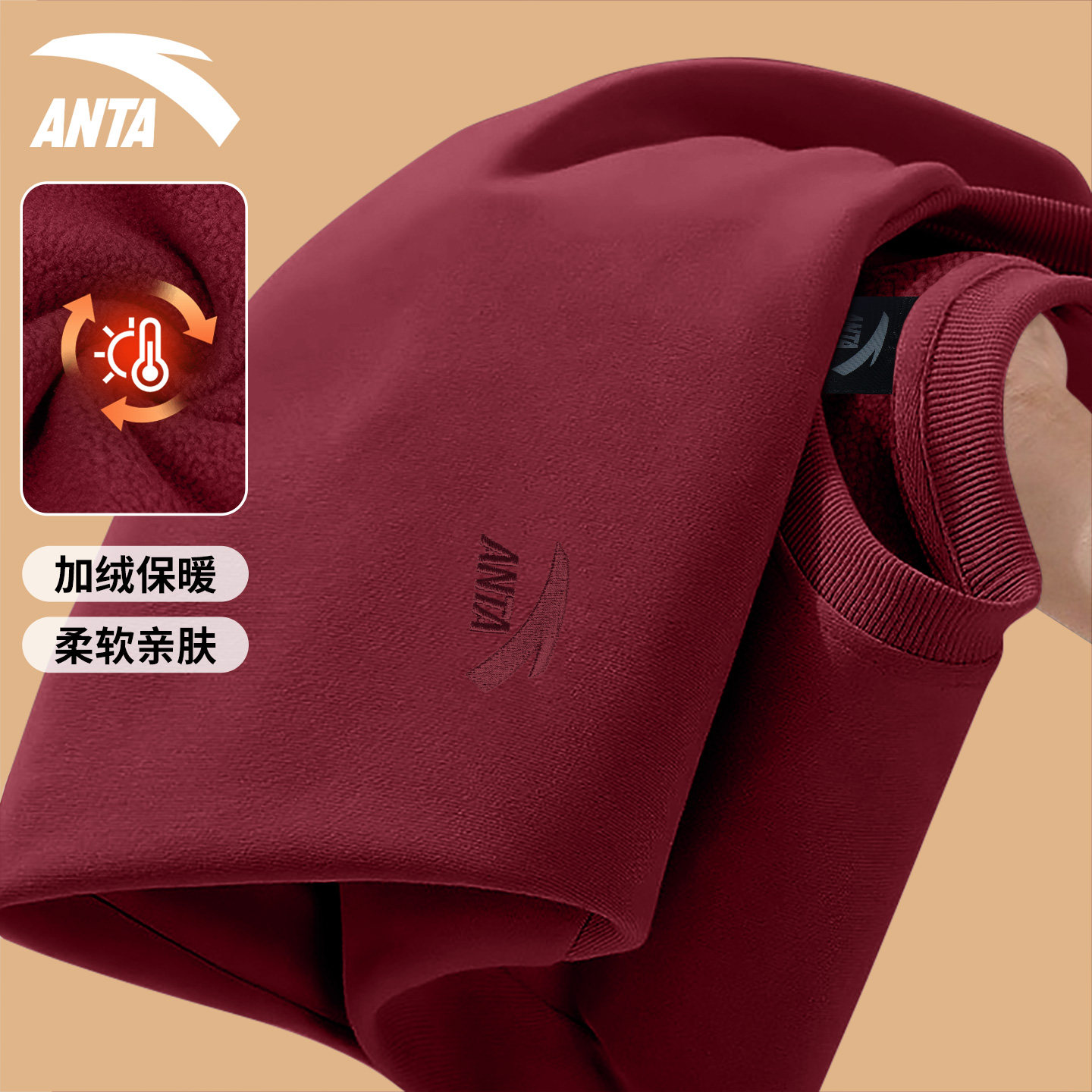 安踏加绒卫衣男女新款冬季圆领宽松长袖T恤青少年打底衫无帽外套