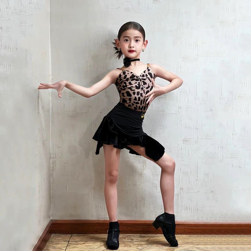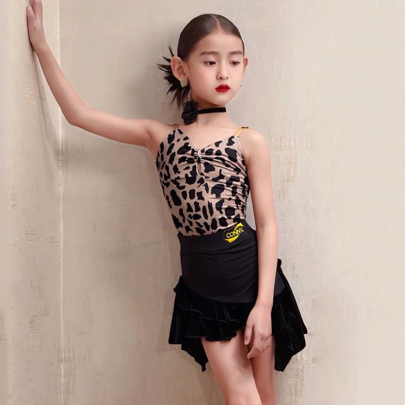 CONNY夏新款拉丁舞服装女豹纹吊带连体上衣舞蹈练功服儿童半身裙