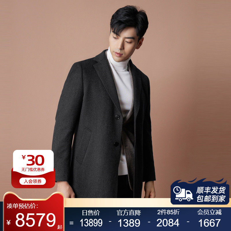 堡尼秋冬新品商务呢子大衣斜纹毛呢风衣领山羊绒外套男BO832251B