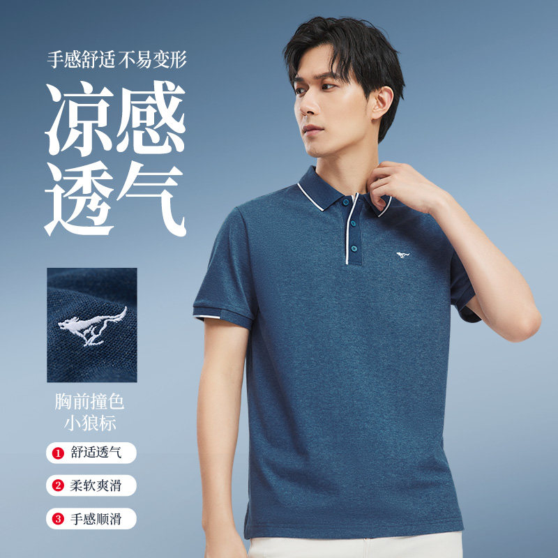 [冰氧吧]七匹狼抗菌花纱短袖polo衫夏季新款凉感透气翻领T恤半袖