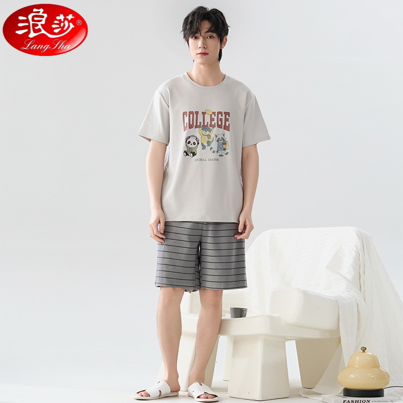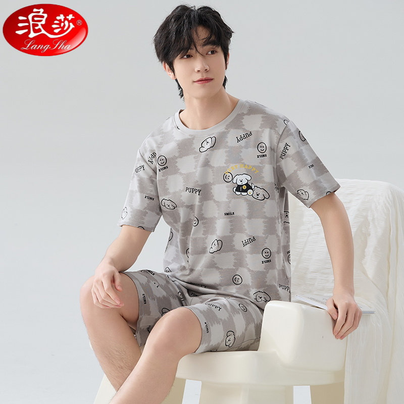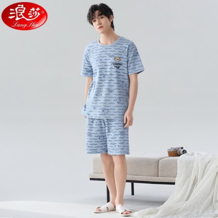 浪莎新款男士睡衣夏季短袖套装舒适纯棉100%男夏款时尚家居服套装