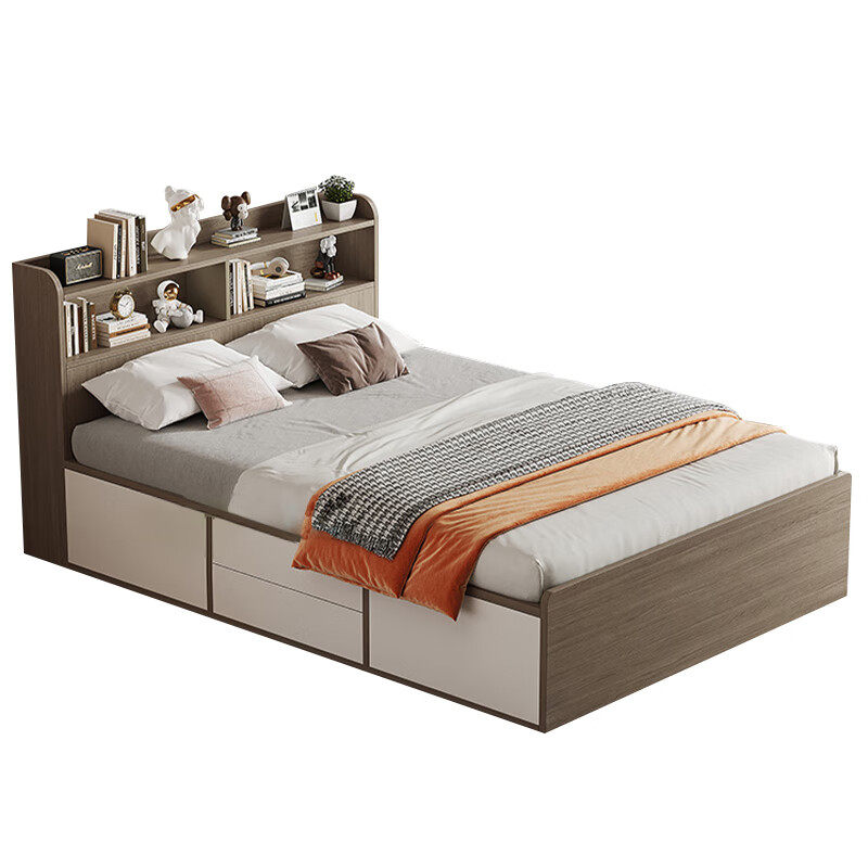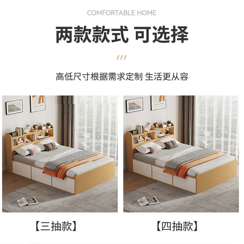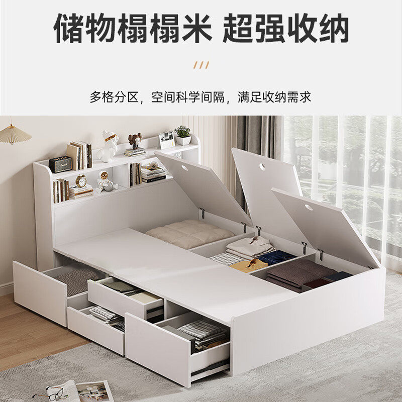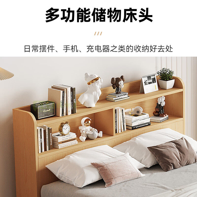 实木榻榻米带书架高箱储物床床双人床现代简约收纳单人床小户型床