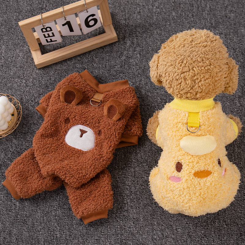 猫咪小熊造型四脚绒衣秋冬加厚保暖小型犬宠物服装可牵引狗狗衣服