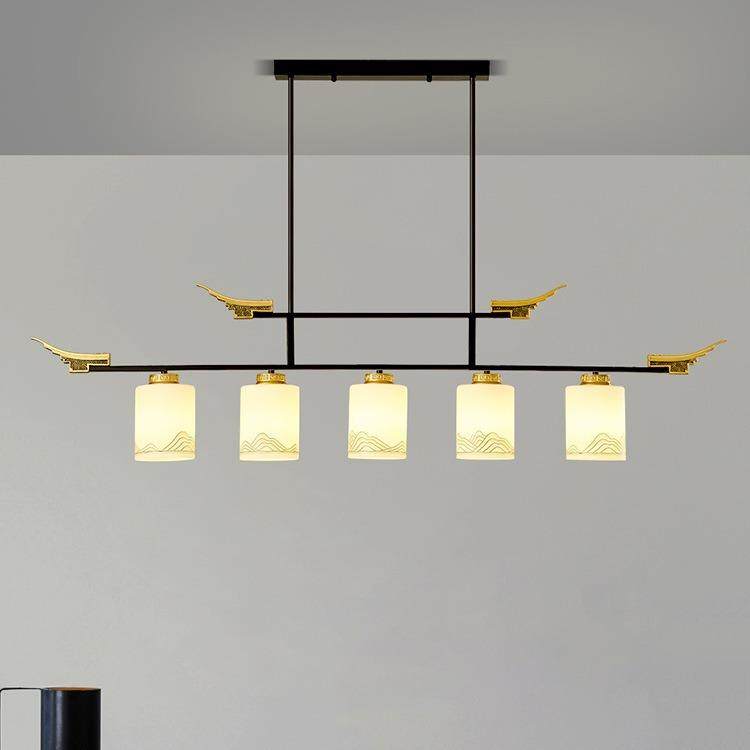 新中式一字餐厅吊灯中国风茶室办公室前台吧台灯三头长条茶台吊灯