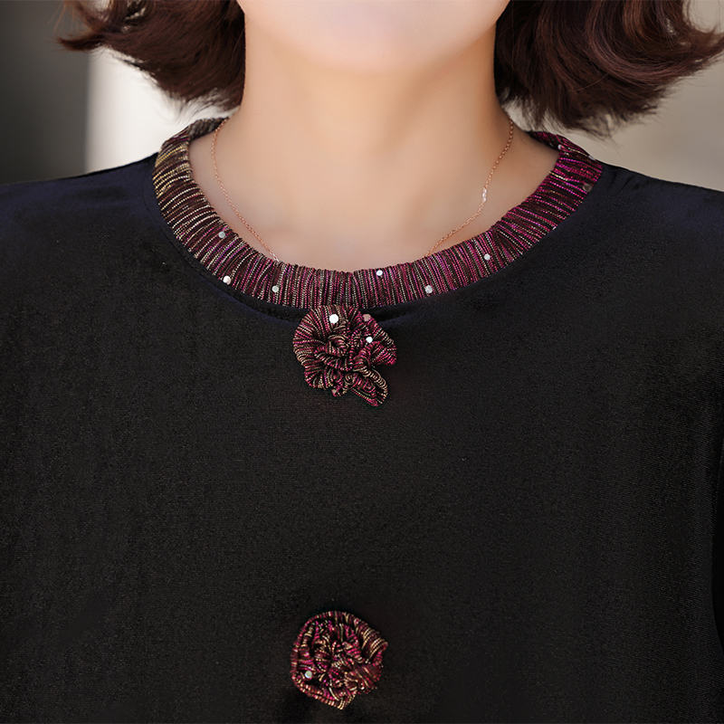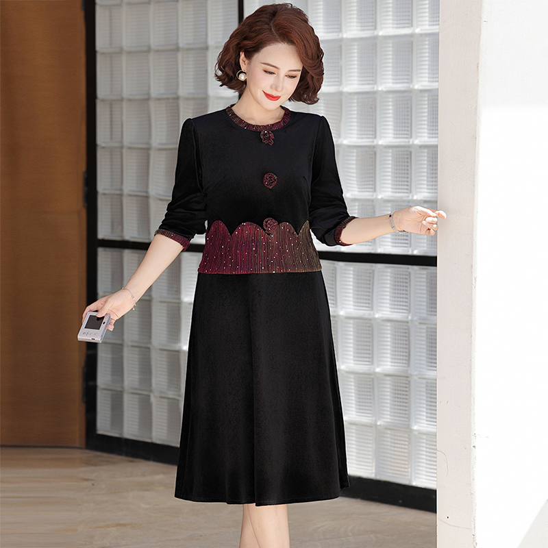 妈妈装春秋时尚长袖金丝绒连衣裙