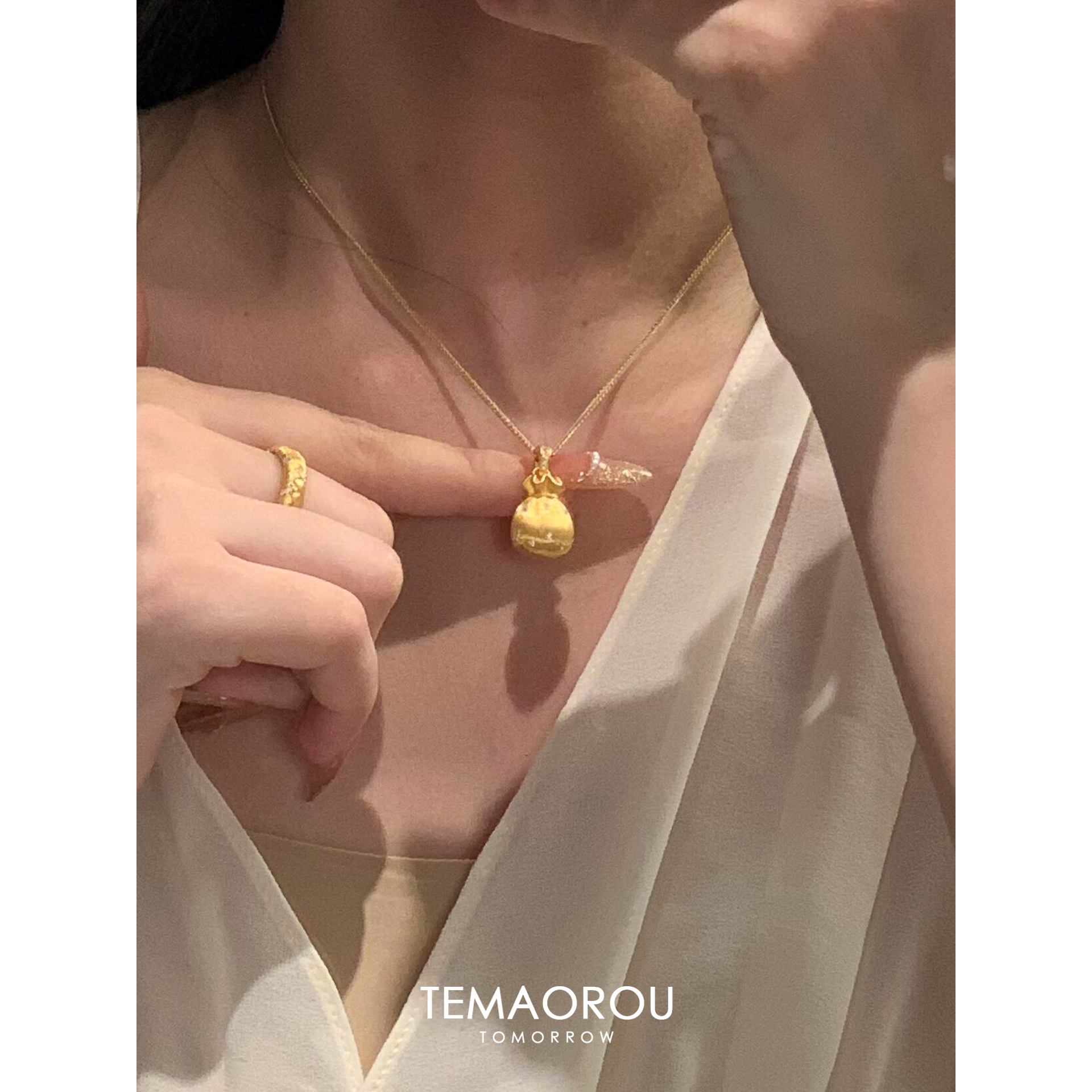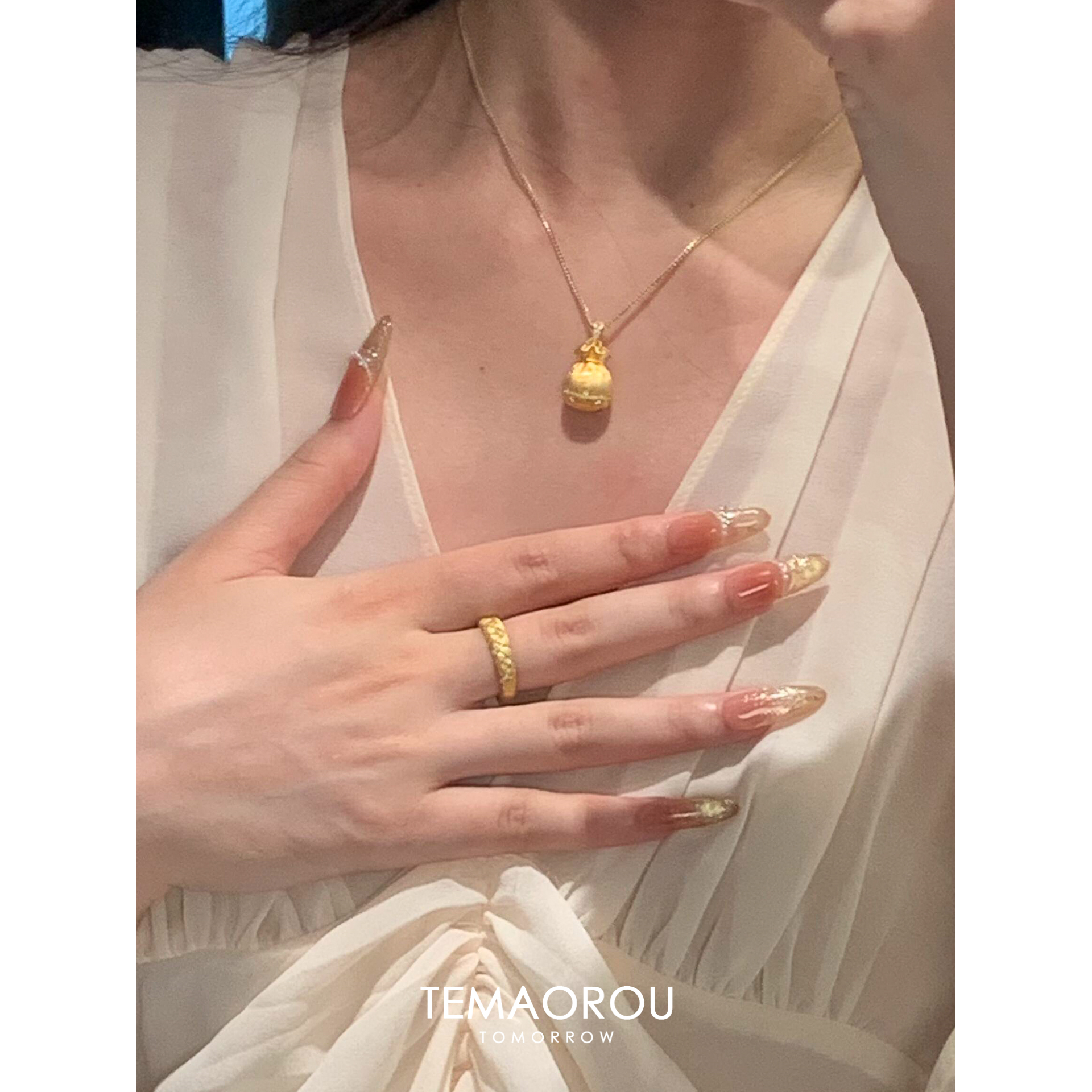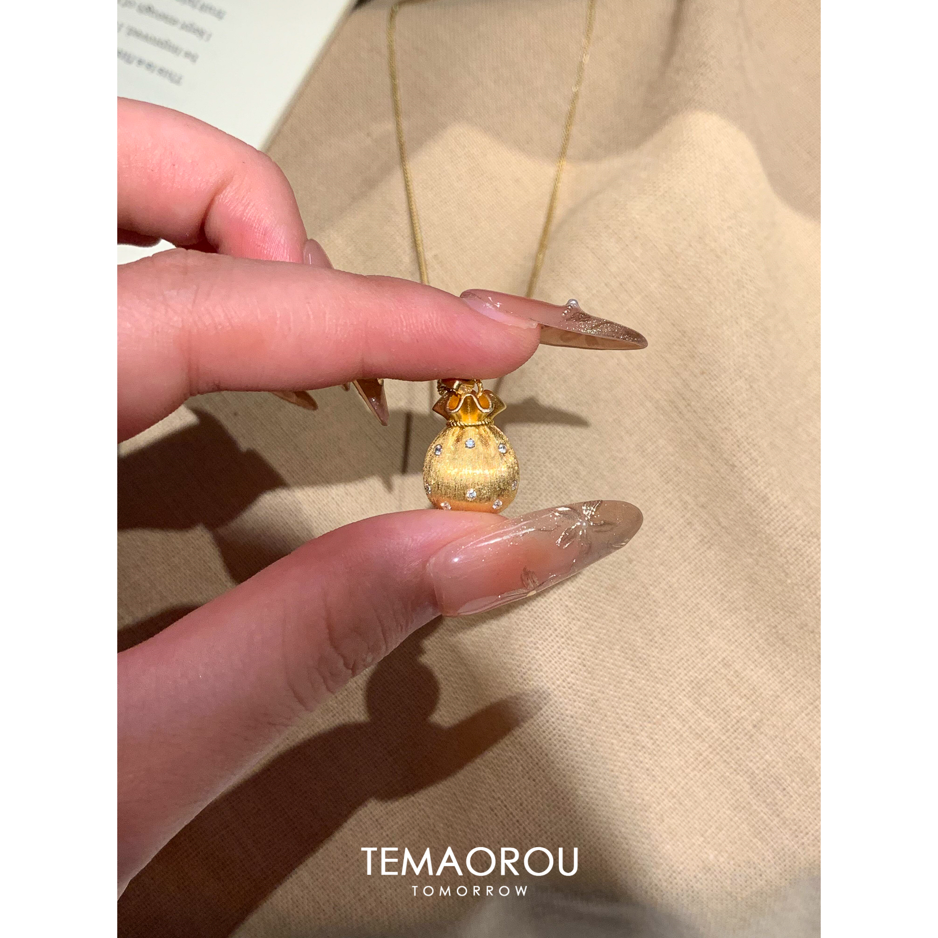 新中式金色拉丝钱袋子项链女款秋冬大气高档颈链轻奢高级感毛衣链