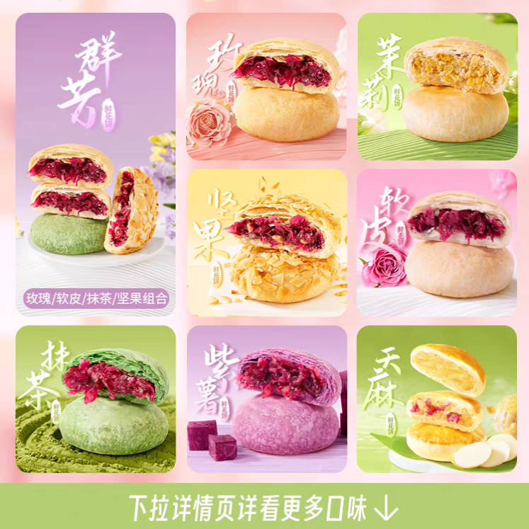 云南老字号潘祥记玫瑰鲜花饼糕点点心坚果抹茶200克袋装