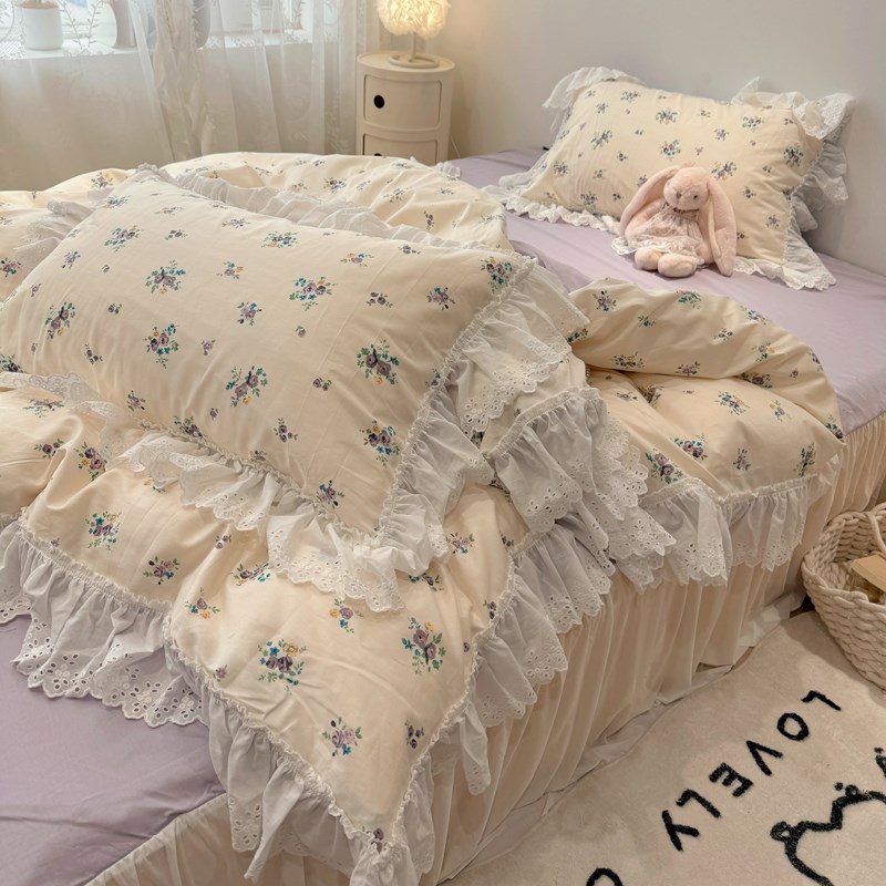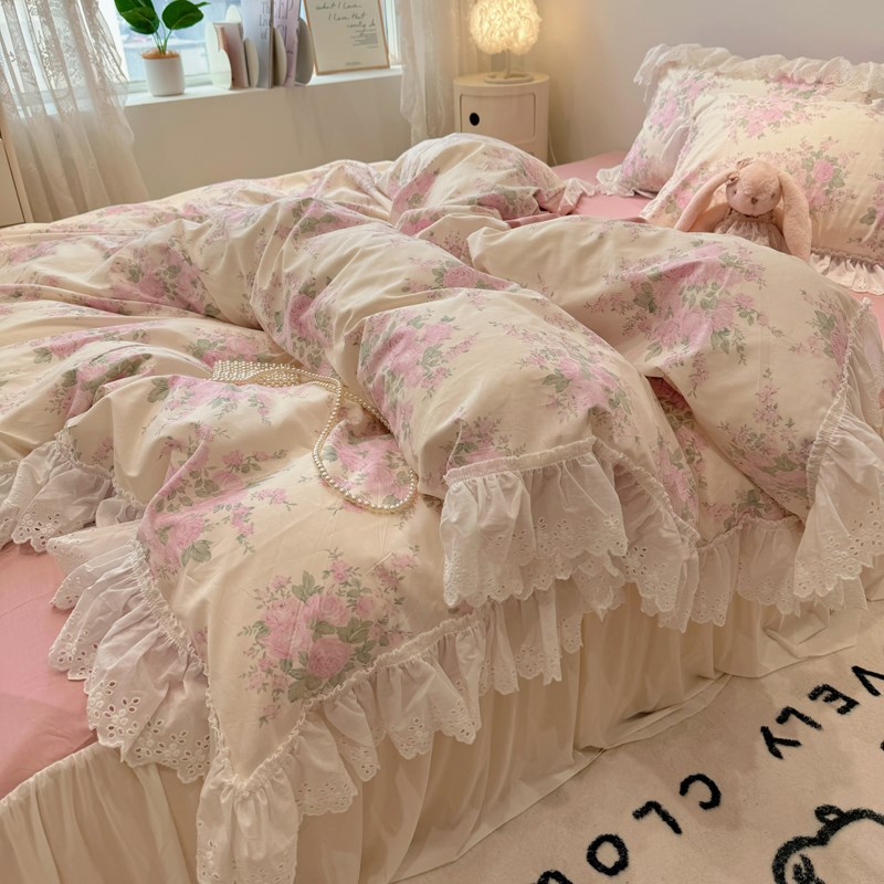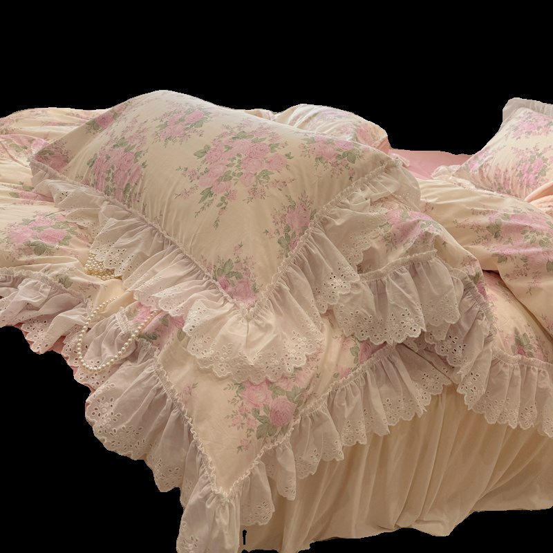 仙女款荷叶边f纯棉四件套公主风少女全棉被套床裙款1.5m1.8米床品