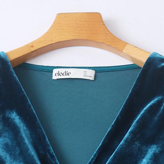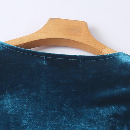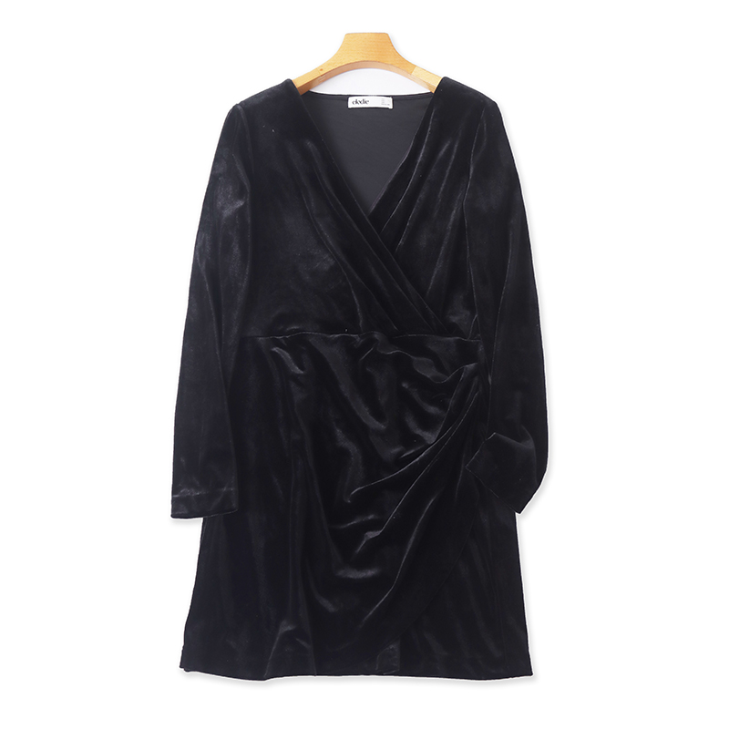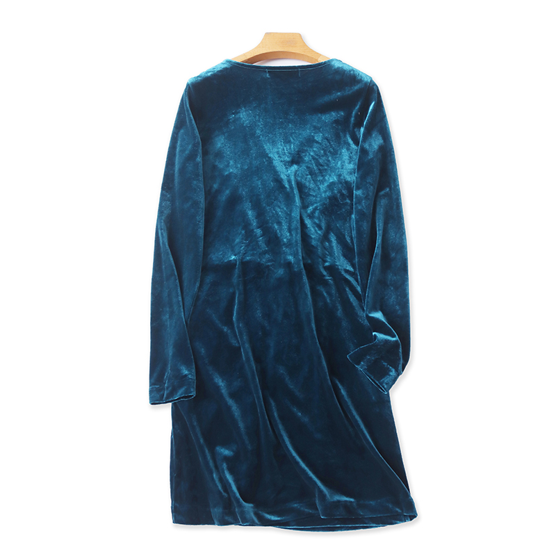 V领金丝绒连衣裙春秋新款长袖收褶中长款显瘦宽松百搭女裙子07433
