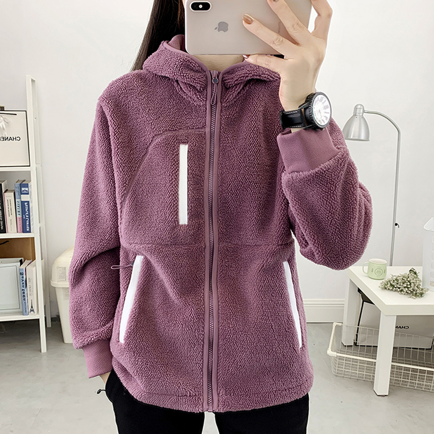高品质秋冬季运动卫衣女加绒加厚连帽拉链开衫宽松保暖抓绒外套男