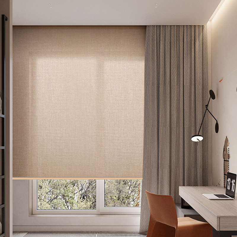 卡慕昂现代简约亚麻半遮光卷拉式窗帘书房办公室浴室卫生间卷帘