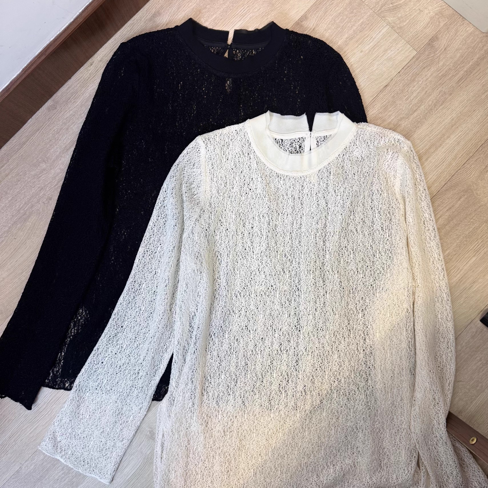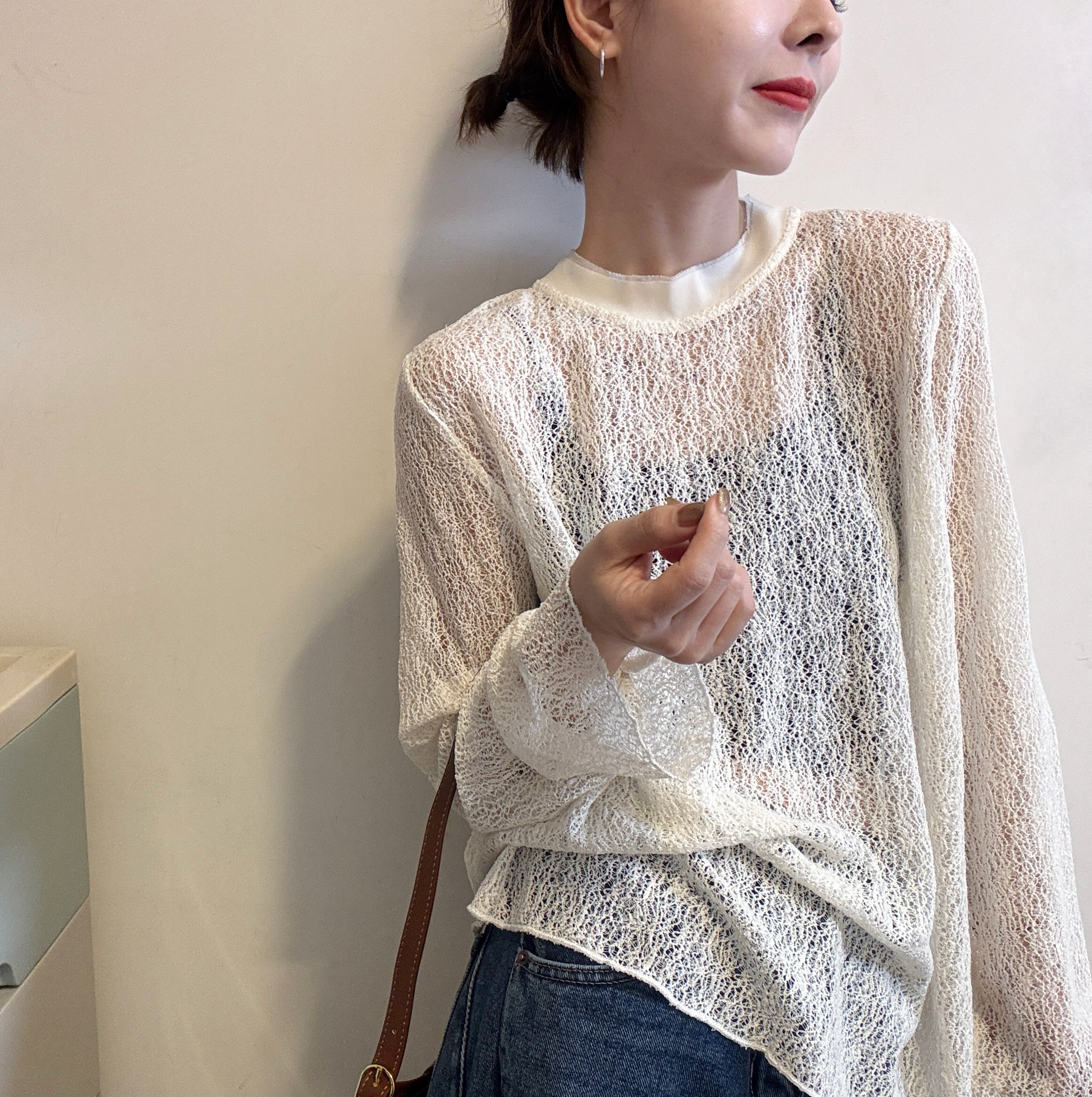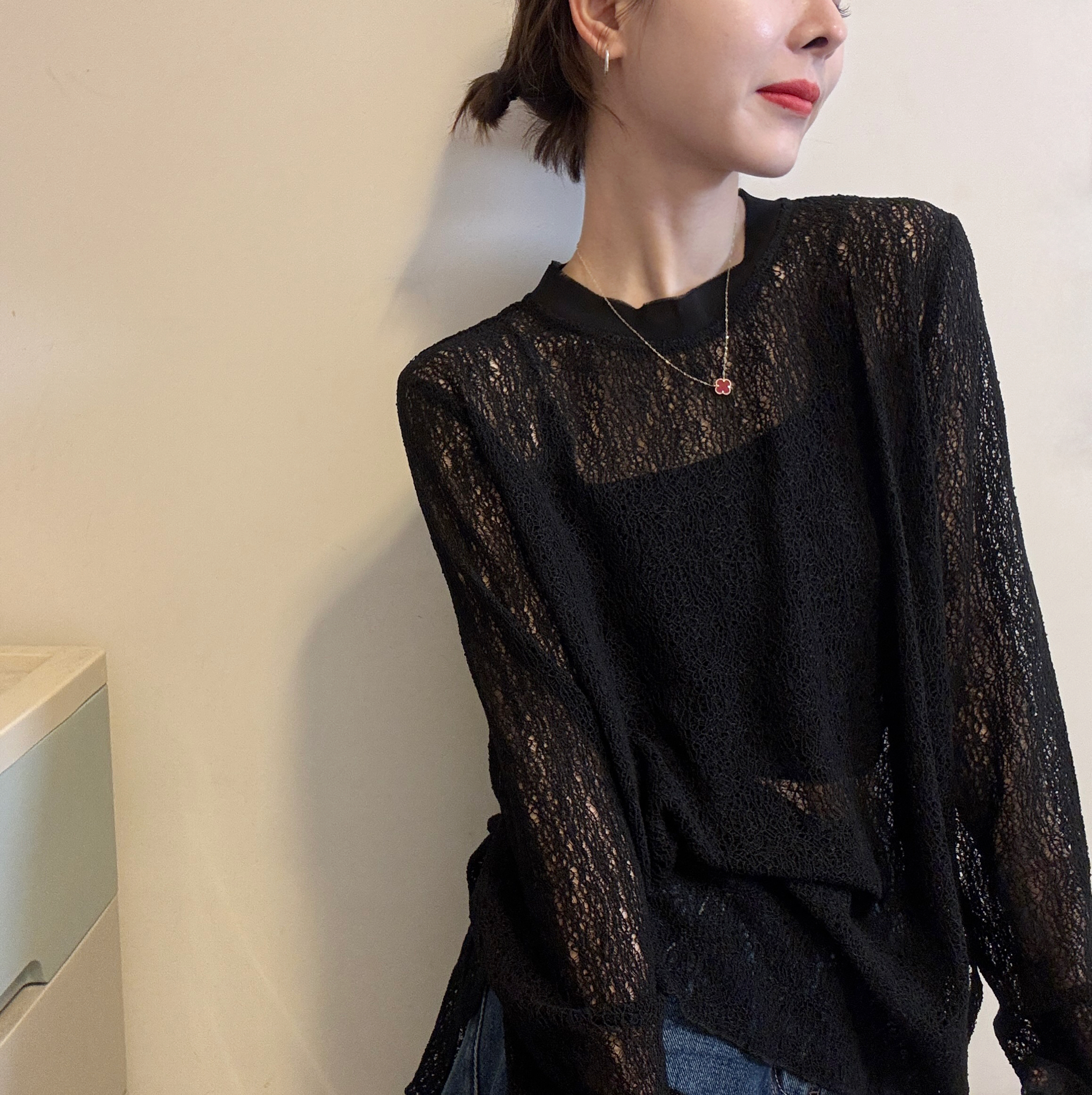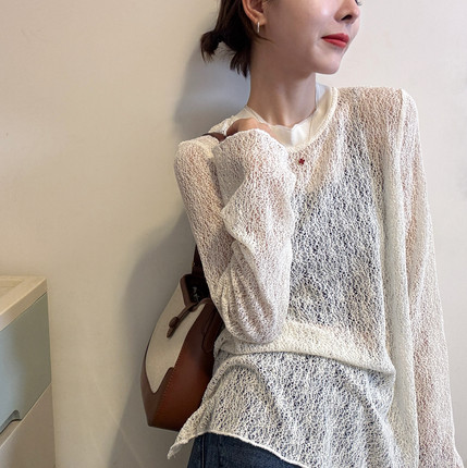 欧洲站2025秋季新款设计感洋气勾花镂空长袖T恤女显瘦套头打底衫