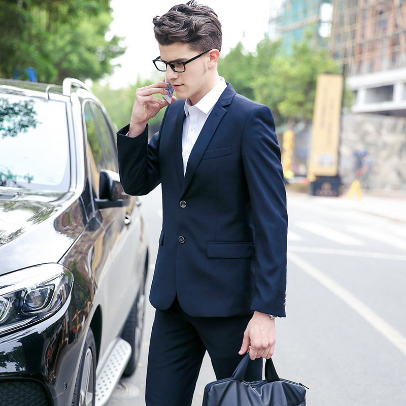 定制绣LG大码男士职业套装西装时尚商务正装公务员三件套黑色薄款