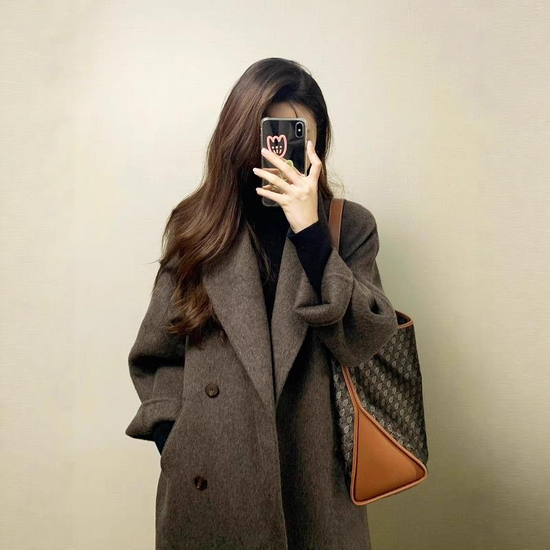 驼色高端双面羊绒大衣女2025秋冬新款韩版中长款宽松流行毛呢外套