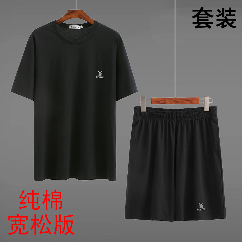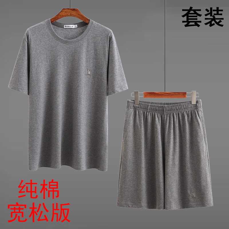 中年男装休闲运动套装夏季爸爸装中老年纯棉大码父亲节衣服两件套