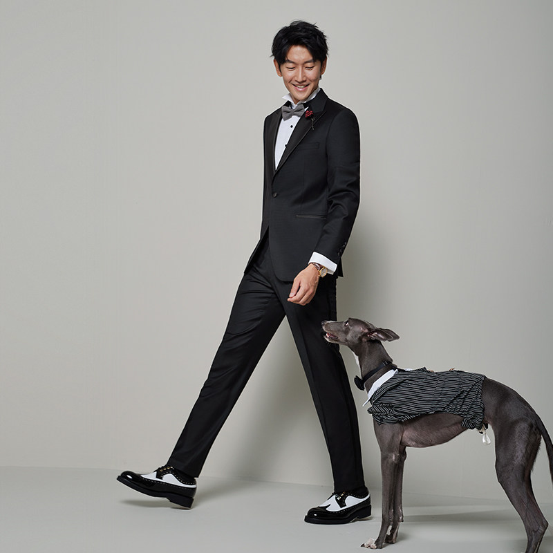 澳嘉男士结婚西服套装戗驳领新郎婚礼服商务正装羊毛塔士多西装男