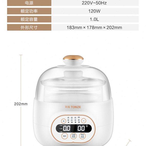 天际全自动玻璃隔水炖迷你电炖盅办公室透明水炖锅单小个寝室锅1L