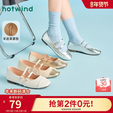 热风2025年夏季新款女士时尚圆头一字带休闲鞋晚晚风气质浅口单鞋