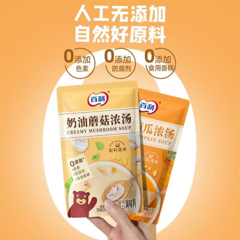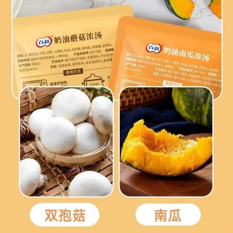 百利西式奶油蘑菇汤南瓜汤200g原汤原料锁鲜即食营养代餐速食汤包