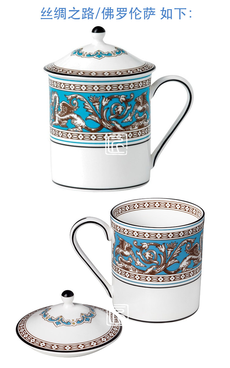 现货英国WEDGWOOD骨瓷中式马克杯带盖茶杯丝绸之路办公杯进口水杯