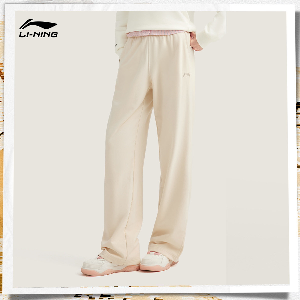 李宁卫裤女休闲刺绣黑色裤子新款春季宽松直筒毛圈针织运动长裤女