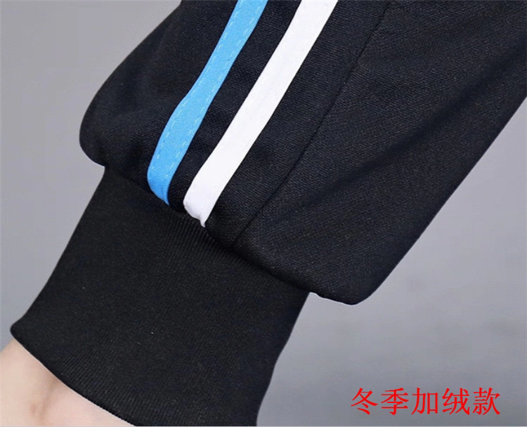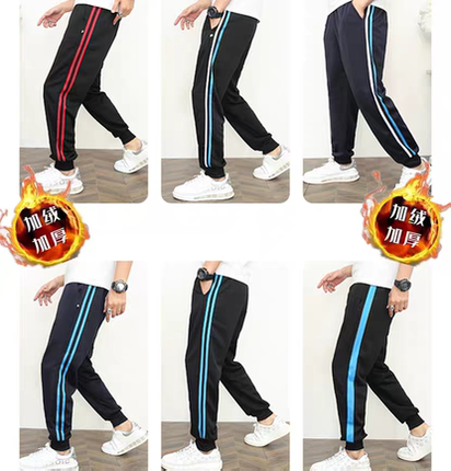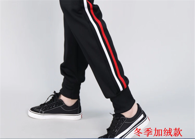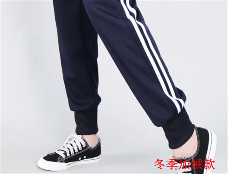 加绒加厚校服裤子男女初高中小学生黑色藏蓝小脚卫裤一道两道杠