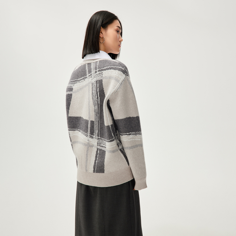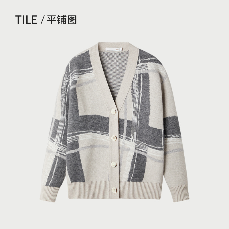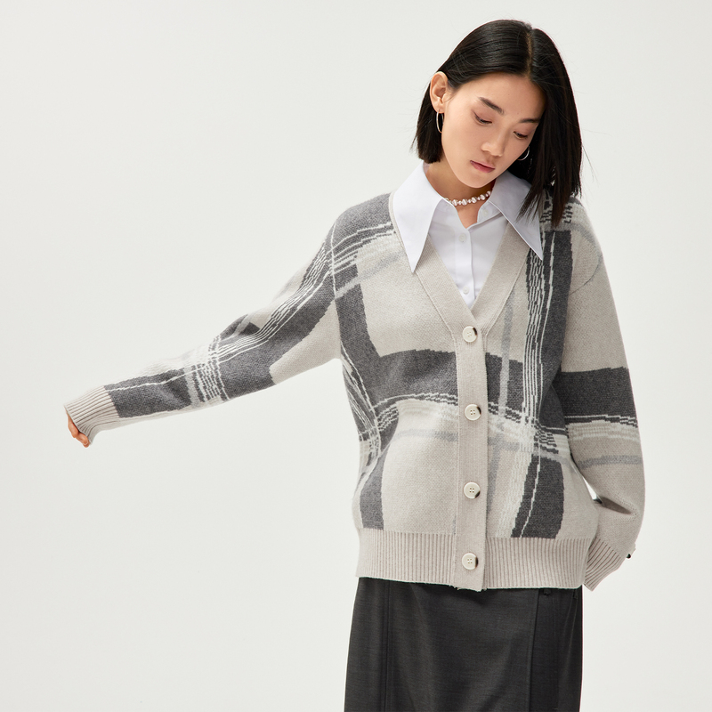 HLA/海澜之家曾超联名针织开衫秋季新款撞色提花保暖休闲毛衣女装