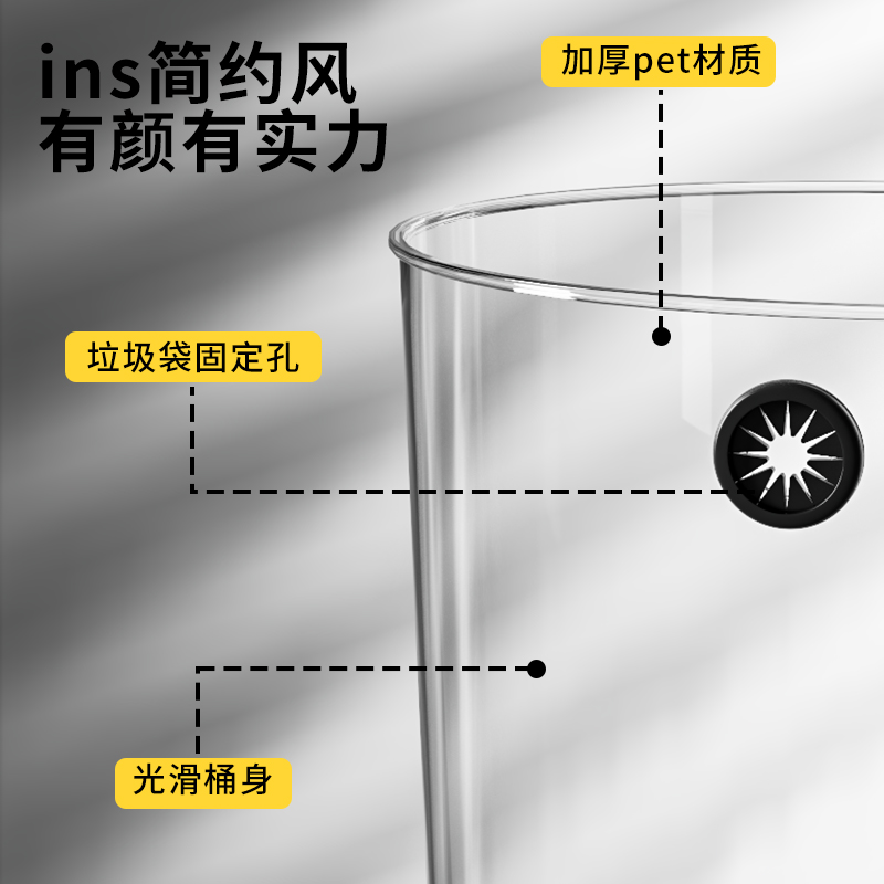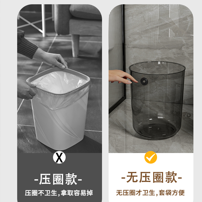 垃圾桶家用2025新款免压圈大容量厨房客厅卫生间透明轻奢大号纸篓