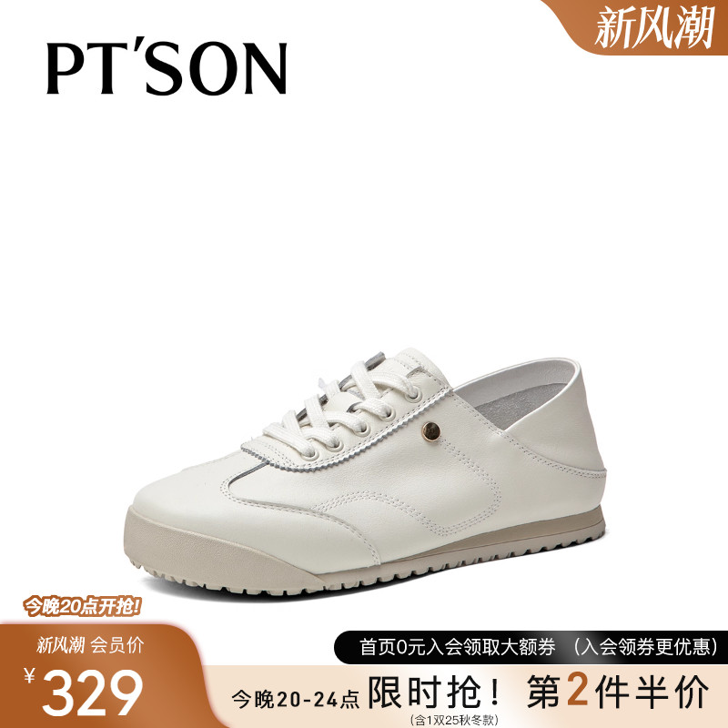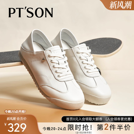 百田森牛皮真皮运动鞋女款2025新款软底不累脚女鞋平底休闲小白鞋