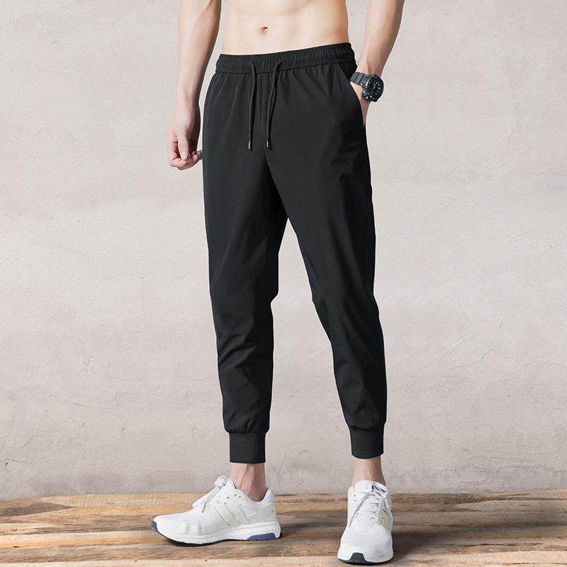 束脚裤男生夏季薄款修身休闲哈伦裤速干小脚九分裤子冰丝运动裤男