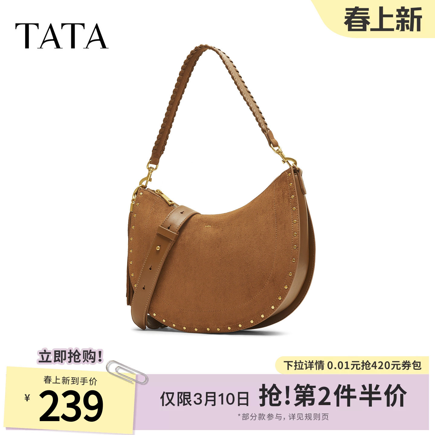 TATA他她绒面女包冬商场同款通勤单肩斜挎包女腋下包新款X3496CX5