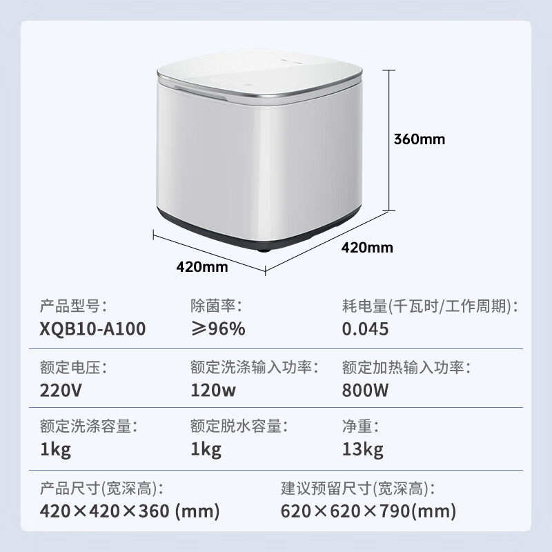 松下迷你洗衣机内衣裤小型全自动家用1KG波轮高温除菌XQB10-A100